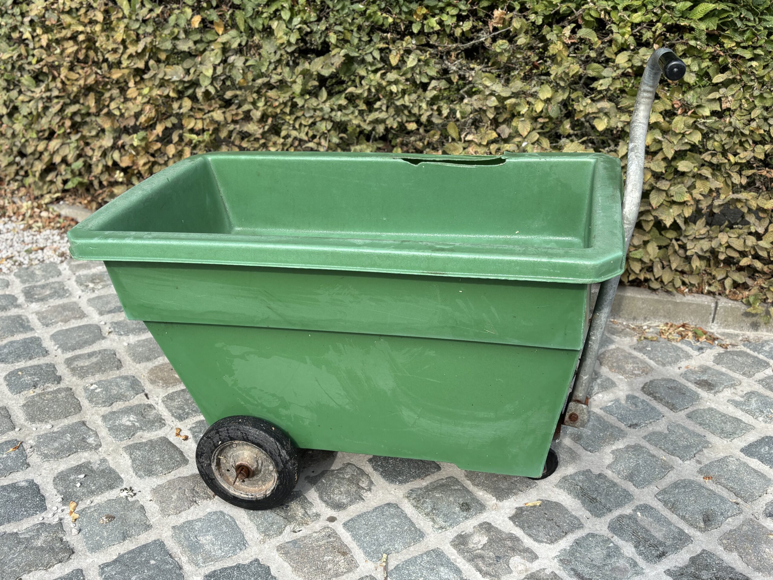 Heel stevige groene kunststoffen voerkar.